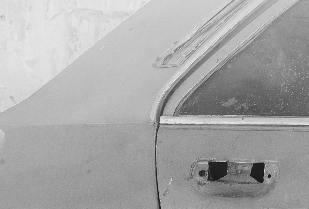 The flow of time between death and birth / Dans ce parking sauvage, je me suis assise sur le capot d’une vieille R18 rouge