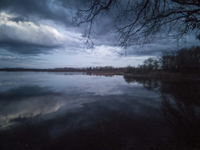 Les étangs de Brenne permettent au ciel de nous délivrer des messages, des fragments, un langage. Au fil de l’eau… Il n’y a rien à déchiffrer, tout est là. Se laisser porter par les histoires qui se racontent. Ne rien enregistrer, ne pas faire de photos parce que ces modes de transmission ne se font que de bouche à oreille. Légendes enfouies dans l’eau des pluies acides, laveuses aux bottes de jonc, sourcières et magie naturelle, dons de guérisseuse, tisseuses de liens, miroir oh mon miroir, dis moi qui est…
